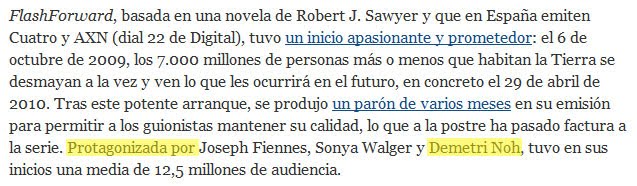En un artículo de la edición digital de El País, el autor hace referencia a los actores de la serie Flashfordward, y confunde a John Cho (actor) con su personaje Demetri Noh.